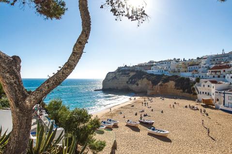 In het zuidelijkste puntje van Portugal vindt u de Algarve, waar de temperatuur stijgt en de prachtige kliffen en stranden u lokken. De Algarve heeft ruim 240 km zandstrand, een goede infrastructuur, veel zon en een gastvrije bevolking. Ontdek de vissersdorpjes, breng een bezoek aan grotere steden zoals Faro of maak een foto op de beroemde kaap Cabo de São Vicente. Eet een visje aan de boulevard van Olhão, bekijk de bootjes in het knusse Tavira, reserveer een golfbaan in Vilamoura of geniet van de heerlijke stranden in Monte Gordo. De Algarve heeft alle ingrediënten voor een heerlijke vakantie!