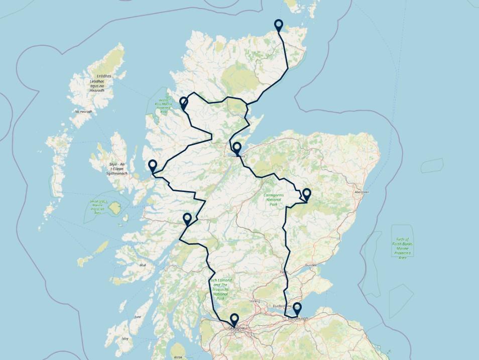 Bewonder de spectaculaire kustlijn onderweg van Ullapool naar Thurso. Breng een bezoek aan Durness bekend vanwege de John Lennon Memorial Garden en stop in Bettyhill. Vergeet niet om een wandeling over een van de noordelijke stranden te maken voordat u uw weg vervolgt naar Thurso.