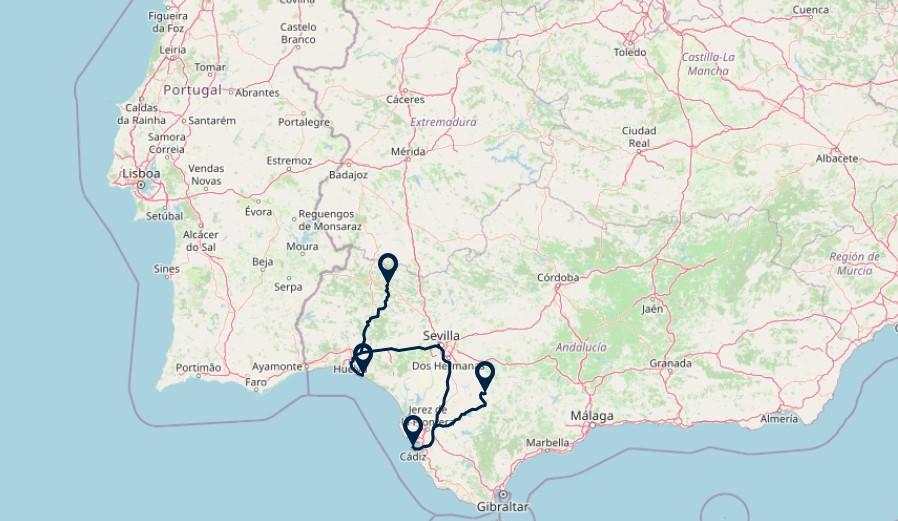 Route: Cádiz - Mazagón, 230 km