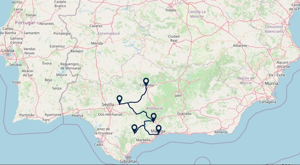 Zoals Nederland met tulpen en klompen gestereotypeerd wordt, wordt Andalusië dat met stranden, flamenco, fiestas, tapas en sherry; deze typering verwijst naar de ontspannen levensstijl van de Andalusiërs. Maar Andalusië heeft zoveel meer te bieden: een bijzonder rijke historie waarin de Moren zeven eeuwen de scepter hebben gezwaaid en er een fascinerende erfenis hebben achtergelaten, bijvoorbeeld in Cordoba. Ook werelderfgoedstad Sevilla ligt op de route. Vanuit Antequera kunt u, als u wilt, een tocht maken naar het Alhambra in Granada.