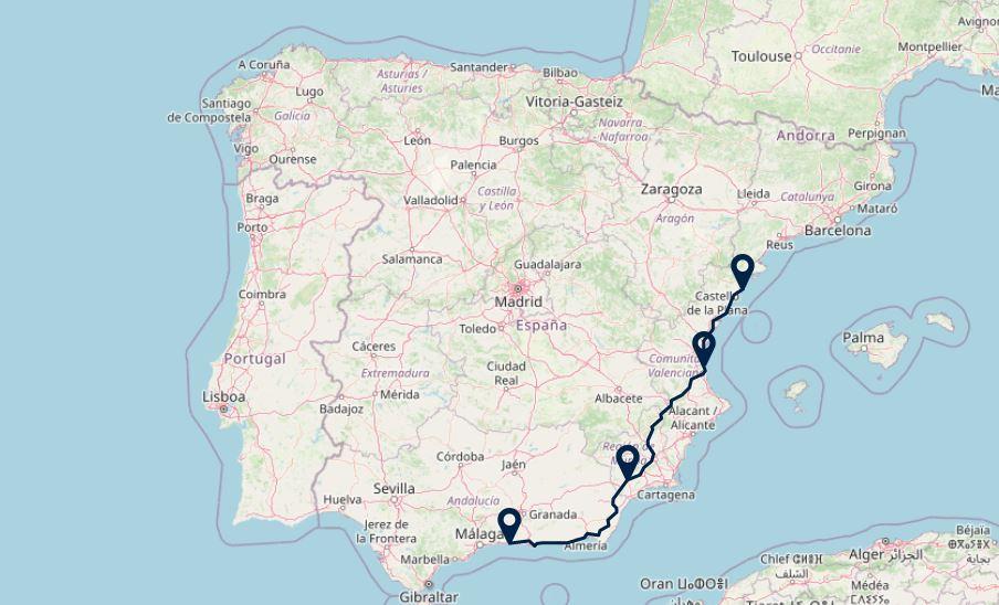 Hoewel de stranden langs deze route, die loopt van Valencia naar Malaga, jaarlijks miljoenen toeristen trekken, heeft deze regio heel wat meer te bieden. Vanwege de strategische locatie zijn onder andere de Grieken, Phoeniciers, Carthagers, Romeinen en Moren allemaal langs geweest en hebben ook allen hun sporen nagelaten. In het achterland vindt u vruchtbare velden, citrusplantages en diverse natuurparken. Een bezoek aan zowel Valencia als het Alhambra in Granada is prima in te plannen, maar als u liever gaat golfen, dan is dat in deze regio ook zeker mogelijk.