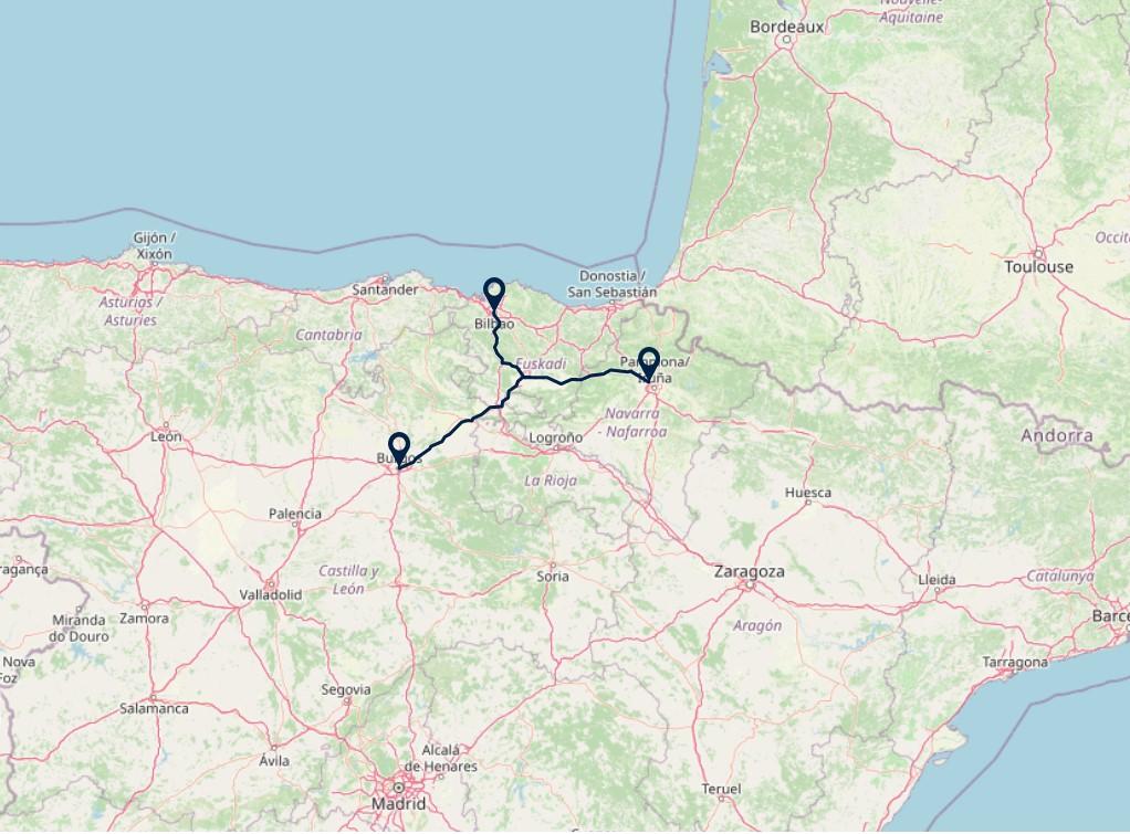 Route: Burgos - Bilbao (inleveren huurauto), 176 km