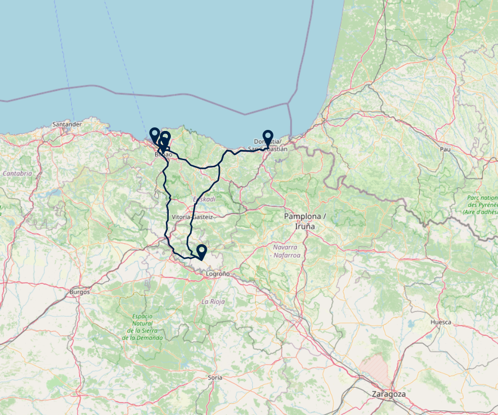 Ontdek het veelzijdige Baskenland - een regio waar ruige kustlijnen, groene heuvels en levendige tradities samenkomen. Van het moderne Bilbao tot het charmante San Sebastián, van de elegante stranden van Biarritz tot de wijnvelden van Rioja: deze reis neemt u mee langs culturele hoogtepunten, adembenemende landschappen en de rijke identiteit van een trotse streek.