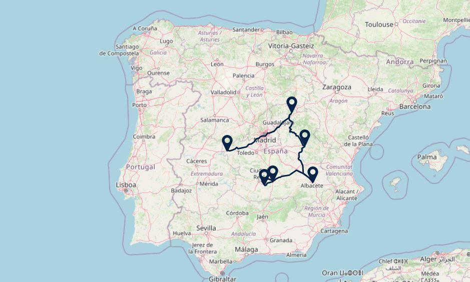 Route: Madrid (ophalen huurauto) - Oropesa, 170 km