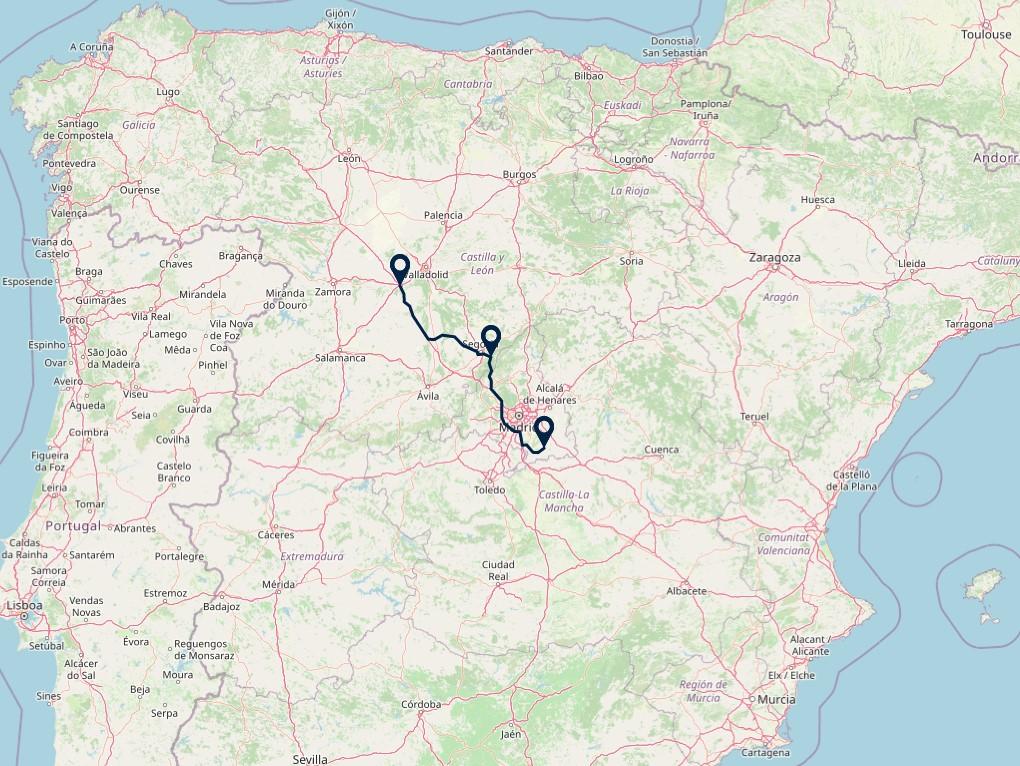Route: Parador de Tordesillas - Luchthaven Madrid (inleveren huurauto), 197 km