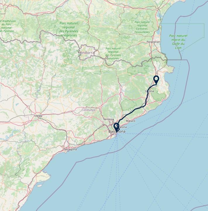 Route: Barcelona - Gerona, 123 km