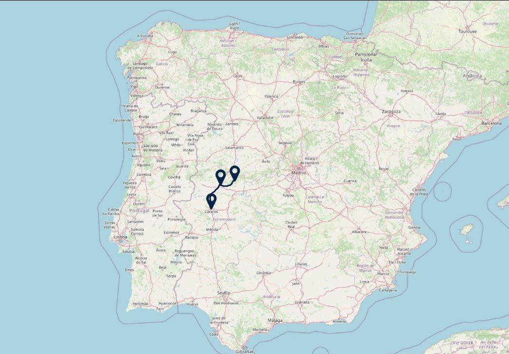 Route: Madrid (ophalen huurauto) - Caceres, 315 km