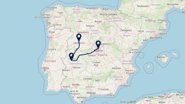 Route: Madrid - Cáceres, 305 km