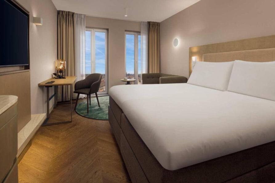 Dit moderne 4-sterrenhotel biedt een comfortabele uitvalsbasis voor een verblijf in de levendige stad. Het hotel biedt een 24-uursreceptie, een sfeervolle bar, een ruim terras, een fitnessruimte en wifi. De kamers zijn stijlvol ingericht en voorzien van airconditioning, een zithoek, een flatscreentelevisie en een kluisje. De badkamer beschikt over een inloopdouche, toiletartikelen en een haardroger. Sommige kamers hebben een balkon met uitzicht over de stad of bieden extra faciliteiten zoals een kitchenette. Koffie- en theefaciliteiten zijn standaard aanwezig. ’s Ochtends wordt een uitgebreid ontbijtbuffet geserveerd. In het restaurant geniet u van gerechten uit de Nederlandse en Europese keuken, met mogelijkheden voor vegetarische, zuivelvrije en veganistische opties. Groningen ontdekt u gemakkelijk te voet of per fiets; bij het hotel zijn fietsen te huur. De Martinikerk, de Grote Markt en diverse musea liggen op korte afstand.