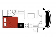 Reist u met 2 echtparen of grote kinderen, dan raden wij u aan om de C-Large te huren. Deze camper heeft een aparte slaapkamer met 2-persoonsbed achterin en ook een aparte toiletruimte, waardoor de camper wat meer privacy biedt. Er is ook 2-persoonsbed boven de bestuurderscabine. De camper beschikt verder over een keuken, douche en eethoek.