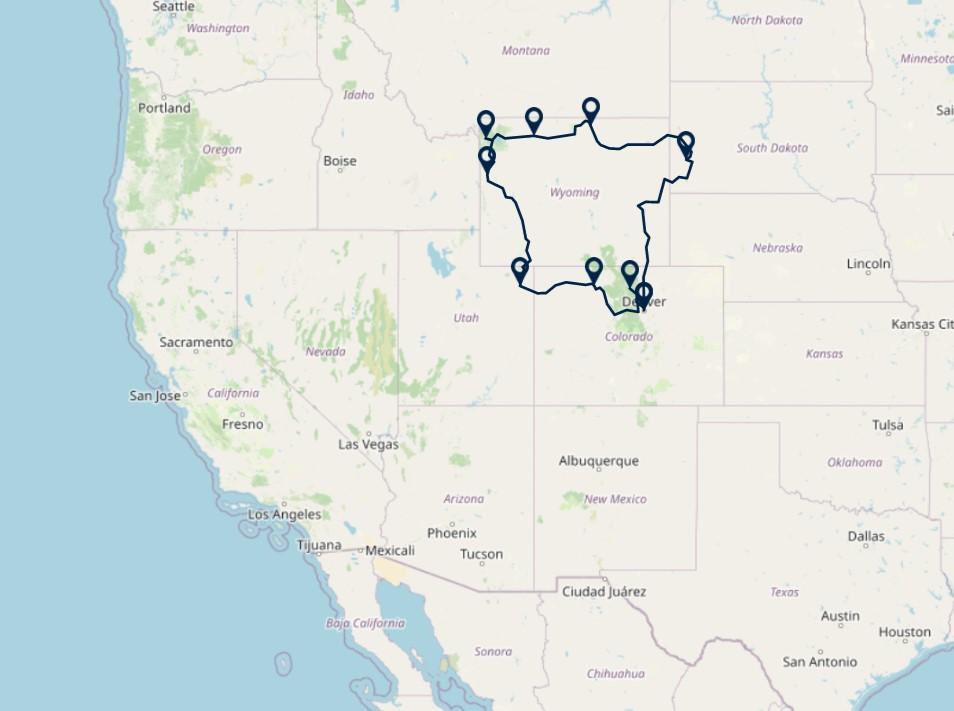 Route: Denver - Black Hills, 600 km