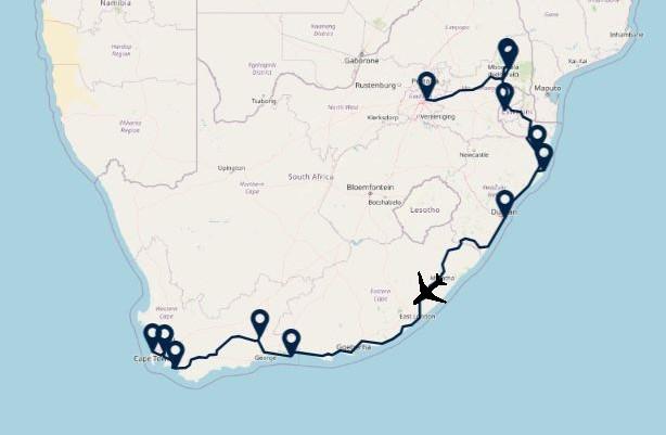 Deze reis is een voorbeeld van een reisroute van een rondreis Zuid-Afrika. Wilt u de reis aanpassen, inkorten of verlengen? Alles is mogelijk! U kunt uw wensen kenbaar maken via het offerteformulier. Wij hebben uitgebreide reiservaring in Zuid-Afrika en stellen graag, in samenspraak met u, de Zuid-Afrika rondreis samen die volledig aansluit bij uw wensen.