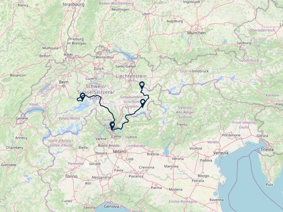 Route: Grindelwald - Lugano, 240 km