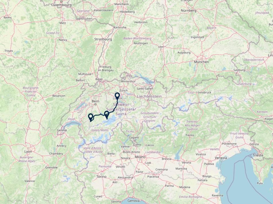 Route: Aankomst in Zwitserland - Luzern, 800 km (vanaf Utrecht)